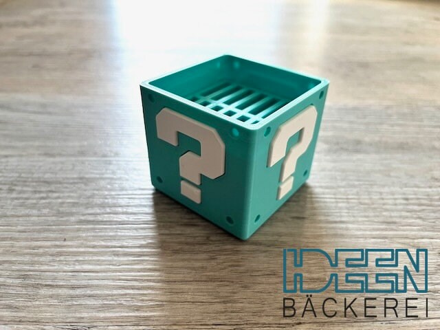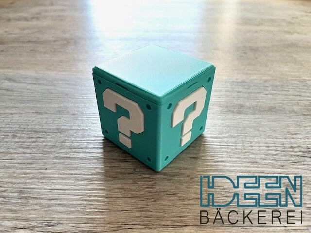 🖍️ Alle auswählbaren Farbkombinationen sind für Dich realisierbar! Hauptfarbe steht für den Würfel und die sekundäre Farbe für die Fragezeichen.