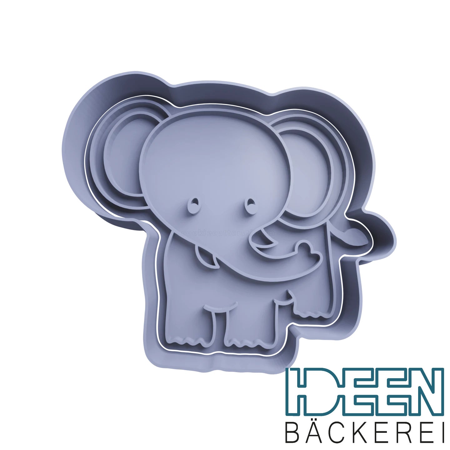 🍪 Ein Keksausstecher in Elefanten-Form bestehend aus 2 Teilen (Stempel + Ausstecher) (Größe: 8cm).